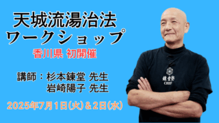 天城流湯治法のワークショップを香川県高松市にて初開催いたします。講師は、創始者 杉本錬堂 先生と学士 岩崎陽子 先生です。EXILE ATSUSHIさんの声のチューニングやK-1選手、プロ野球選手など数々のアスリートの身体の調整を行っている...