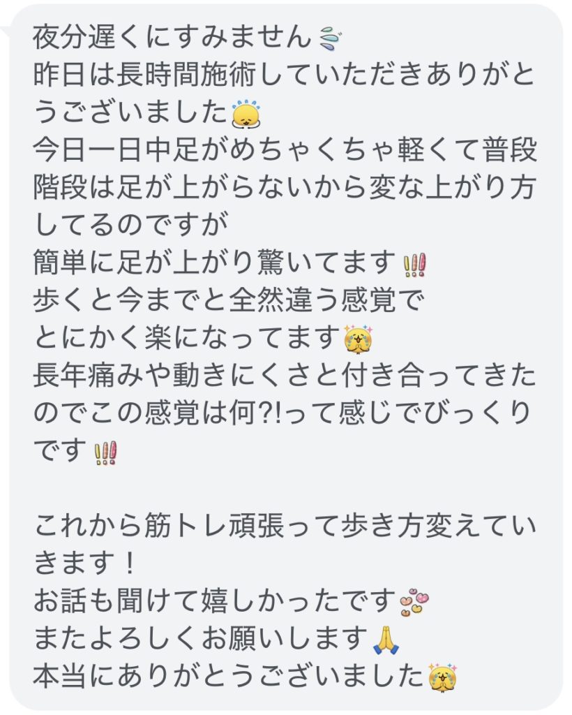 その方から、施術後にいただいたメッセージです。