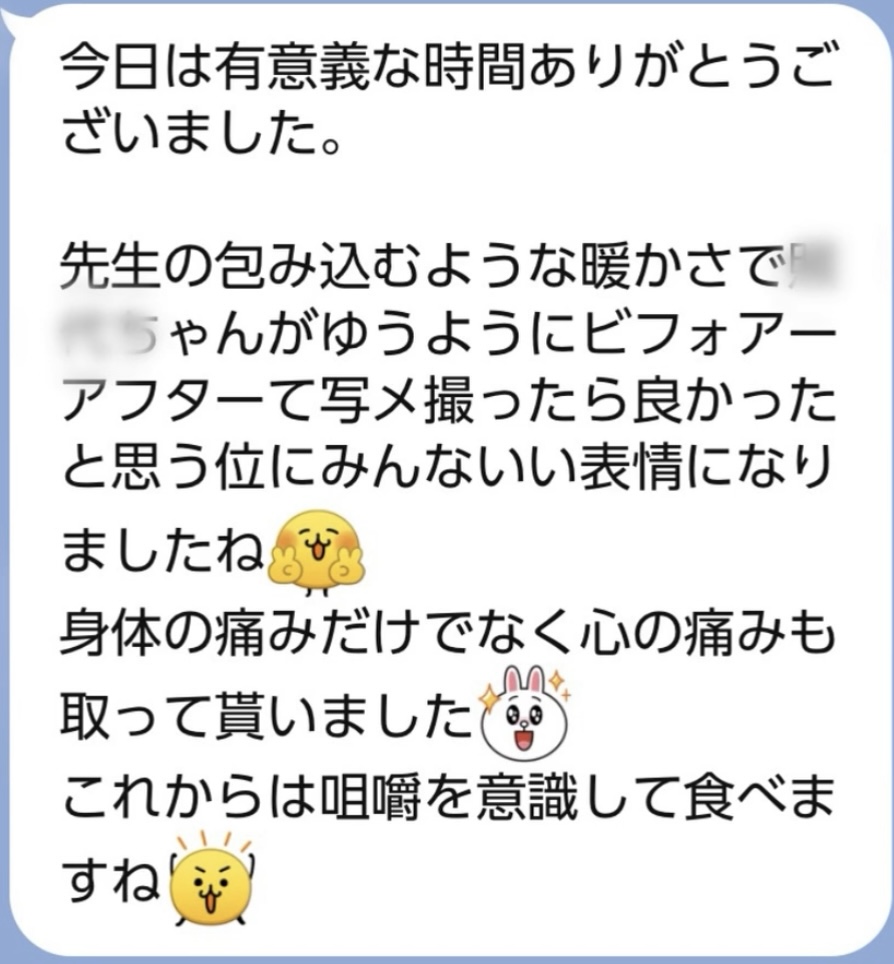 錬堂先生から不調の原因と改善方法を教えていただき、セルフケアを実直に続けたところ、本来の健康体を取り戻すことができました。
